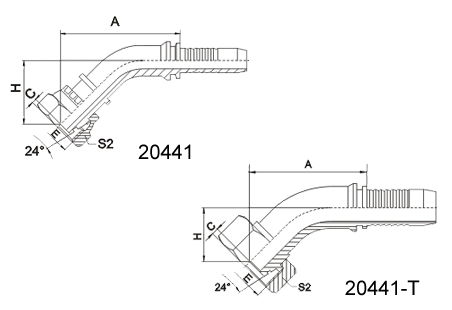 20441 45°公制内螺纹24°锥带O形圈轻系列