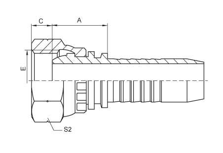 | PART NO. | THREAD E | HOSE BORE | DIMENSIONS | |||