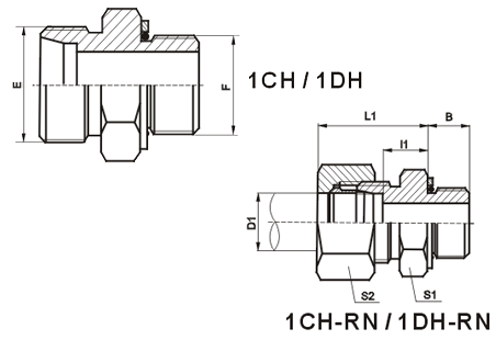 | 1DH-24-22 | M24X1.5 | M22X1.5 | 16 | O19.3X2.4 | 13 | 18..5 | 37 | 27 | 30 | 40 S |